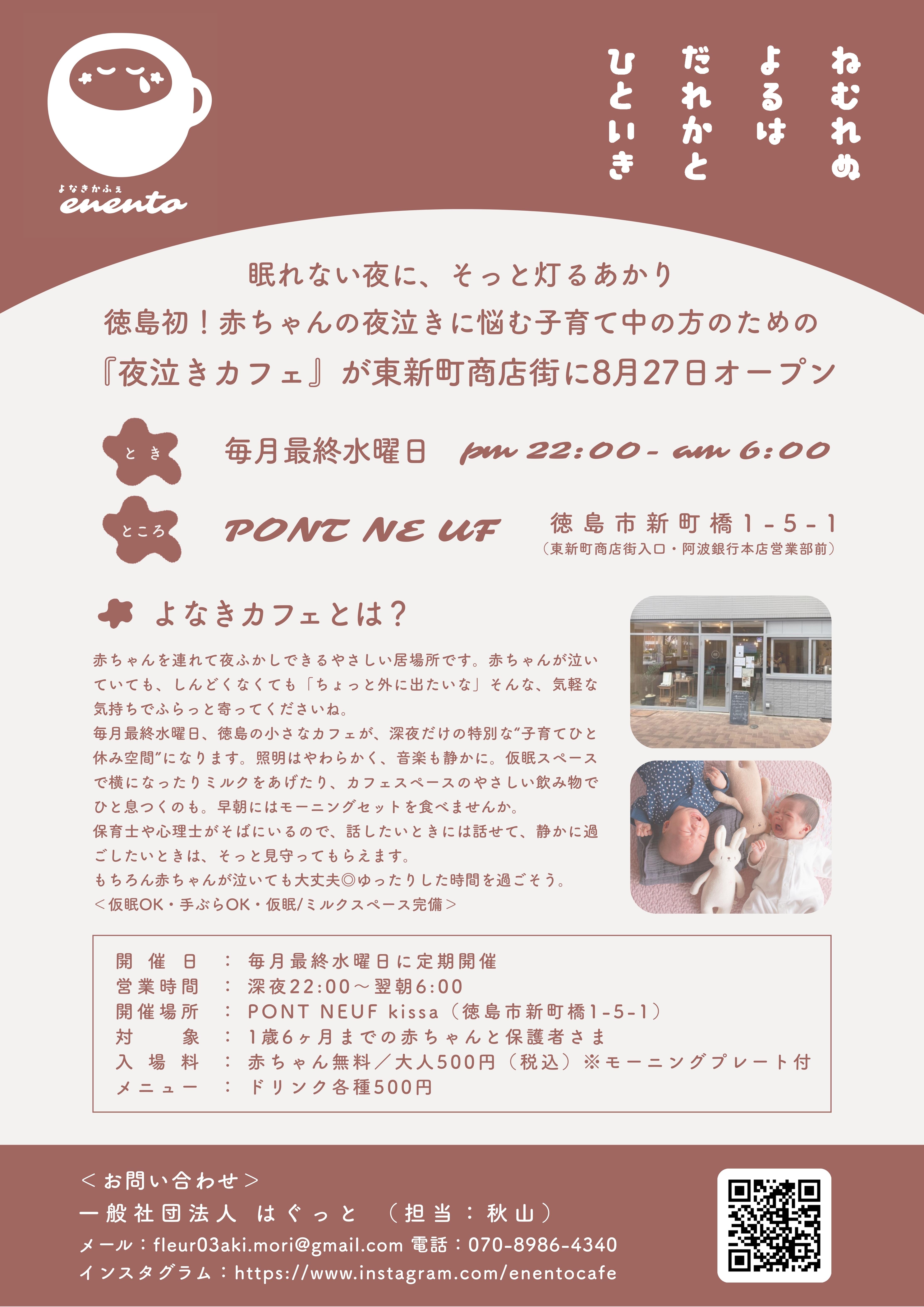 よなきかふぇenentoを毎月最終水曜日に開催いたします。 |